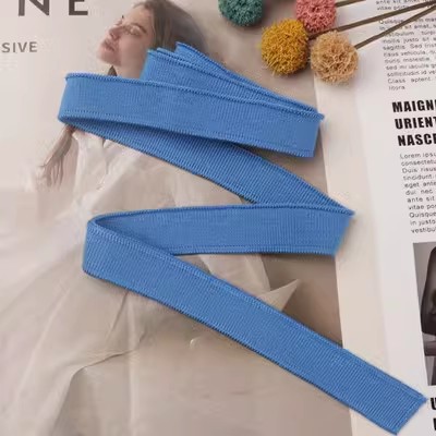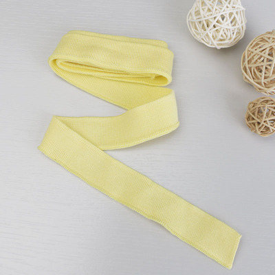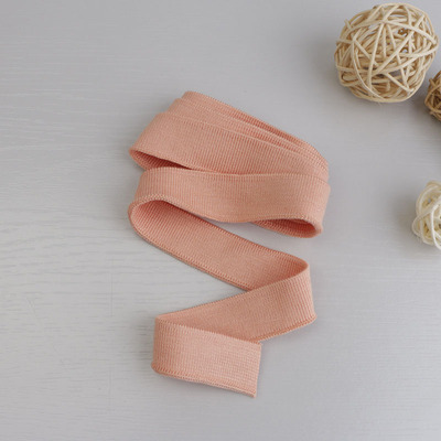 2cm brede, ensfargede, myke, ribbede t-hals i mercerisert bomull, korte mansjetter, elastisk, trådet kant
