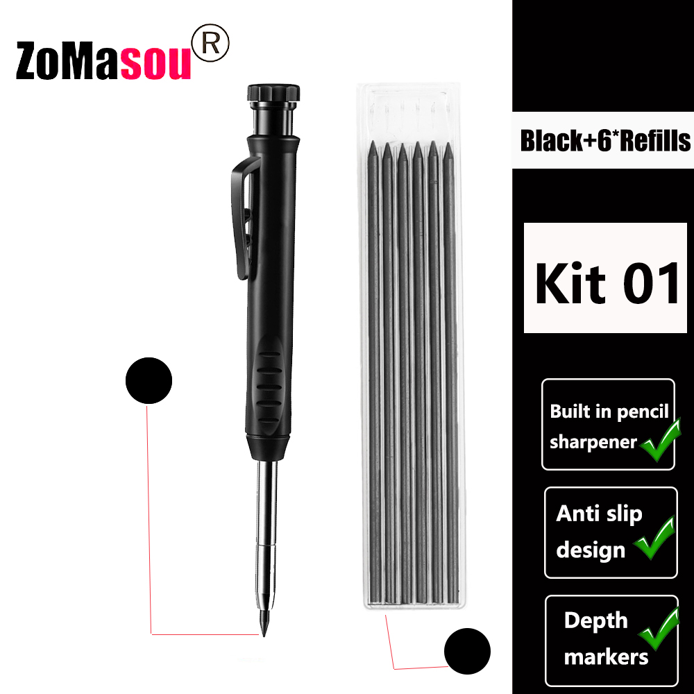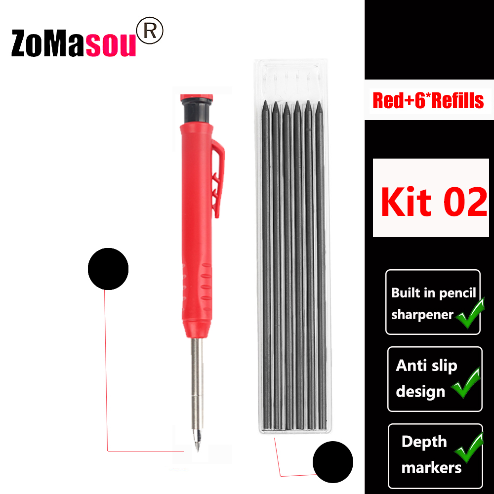 Heldekkende mekanisk blyant for snekkerarbeid, langt hode, dyphullsmarkører, penn, blyanter, påfyllingsstifter, spisser, skrivesaker