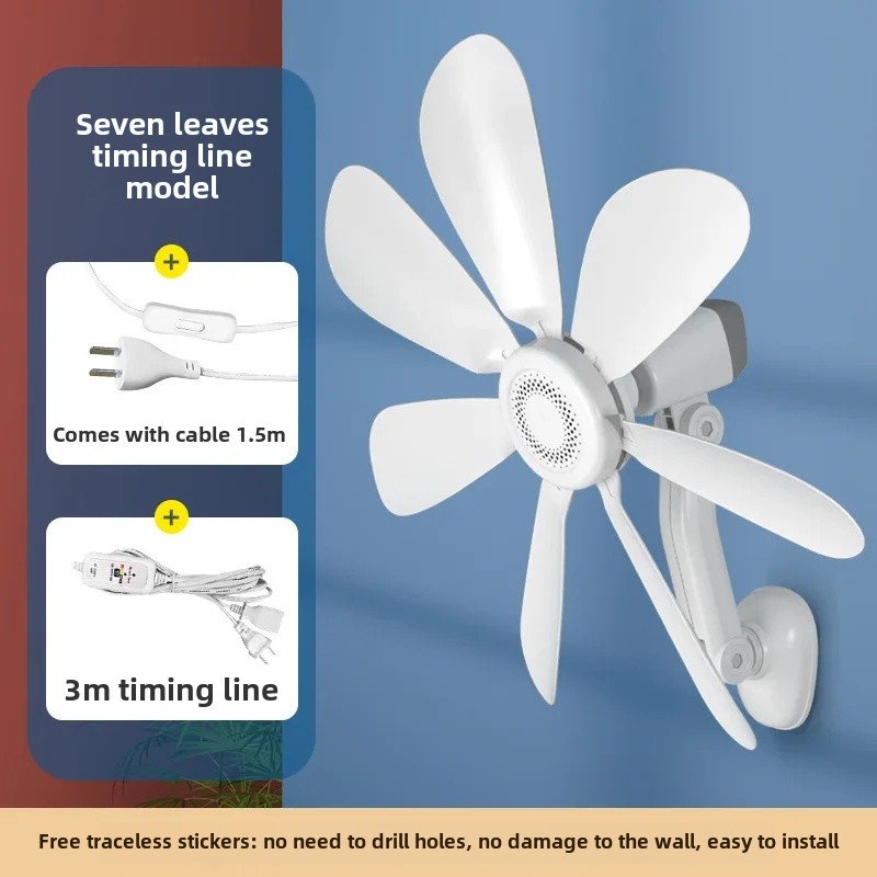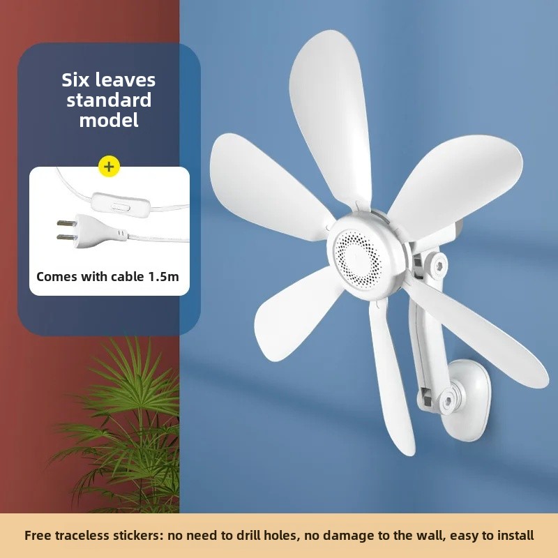 Liten veggmontert elektrisk vifte for hjem og studenthjem, ingen boring nødvendig, ideell for veggdekorasjon på baderom og kjøkken