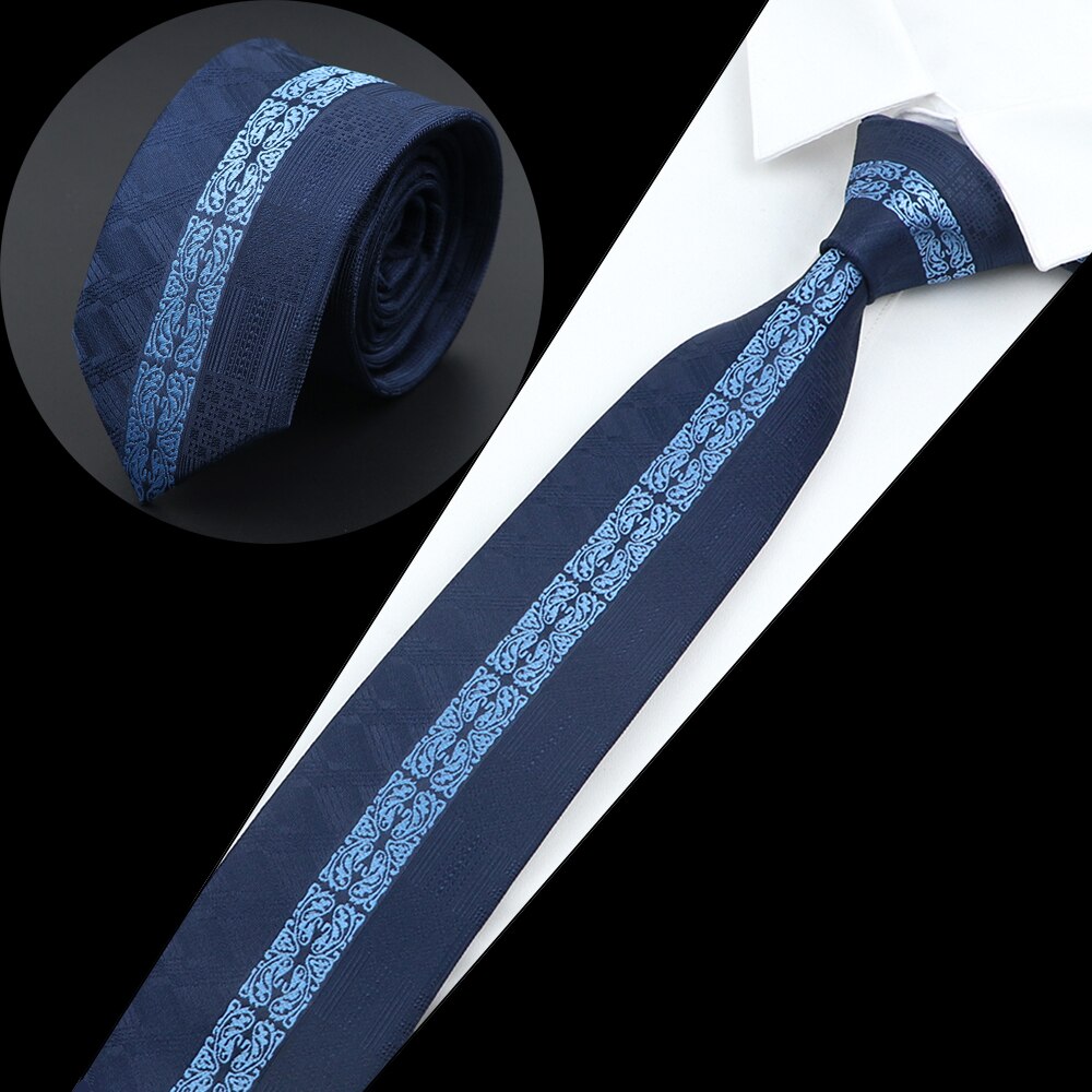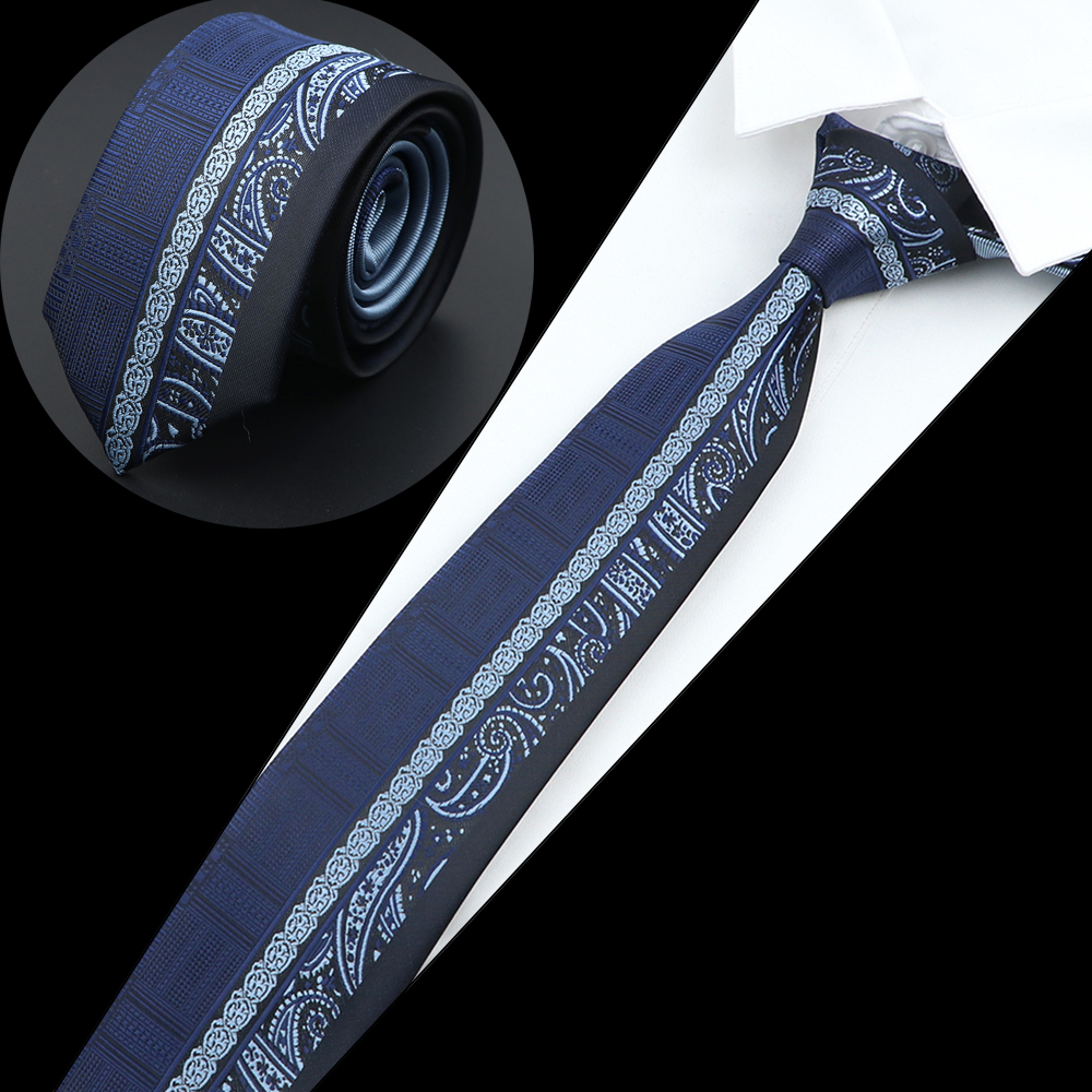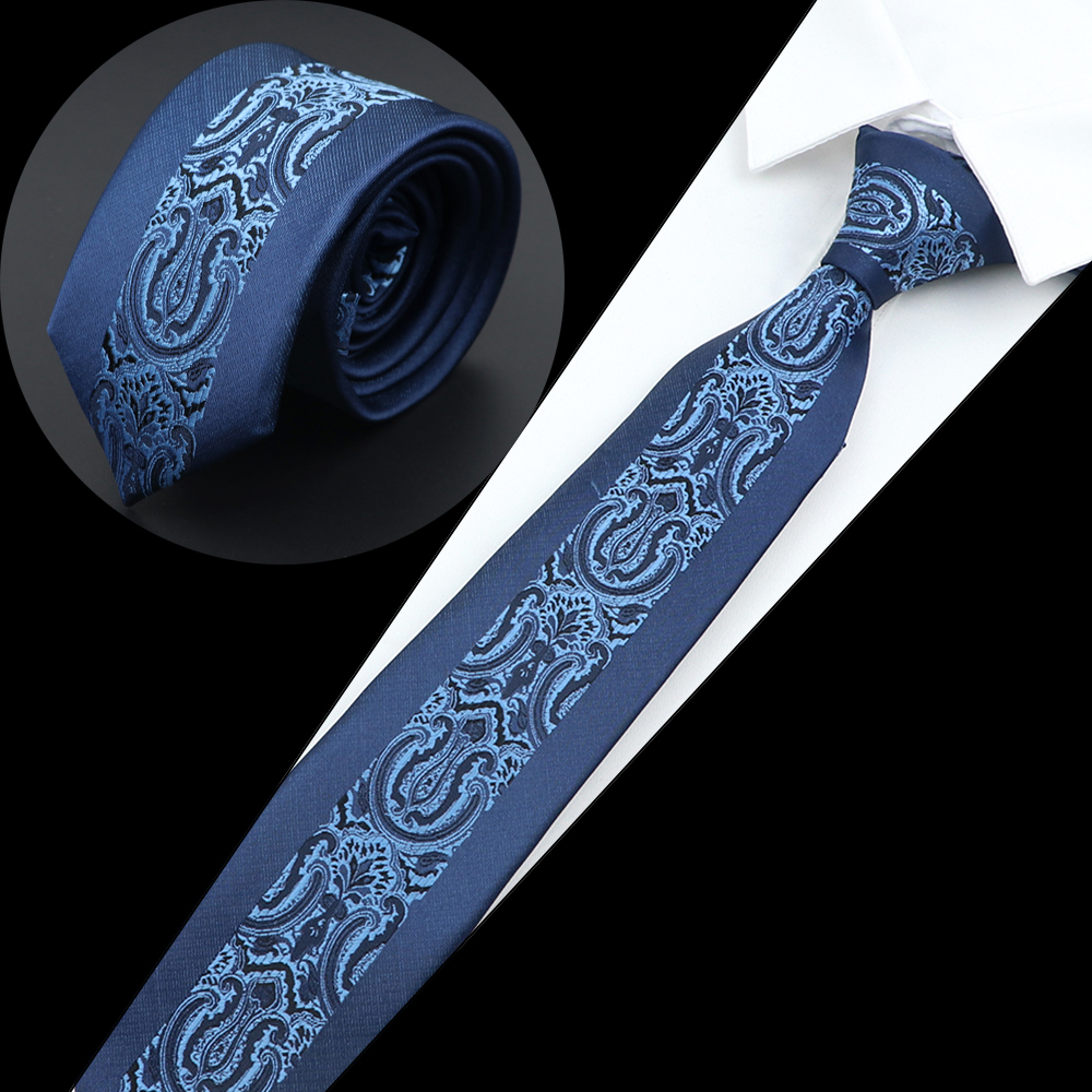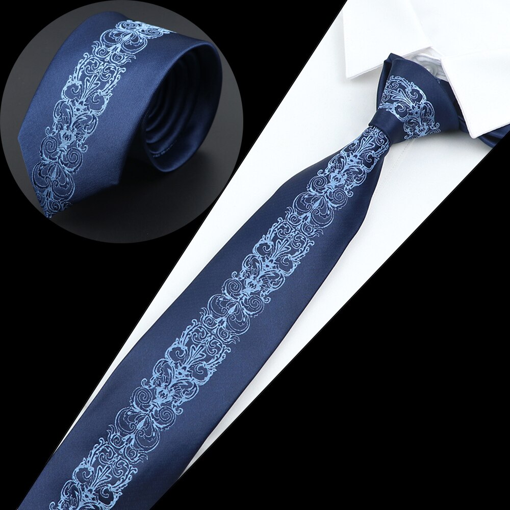 Luksuriøst herreslips jacquardvevd skinny slim 6cm svart blått blomster paisley-slips bankett festskjorte