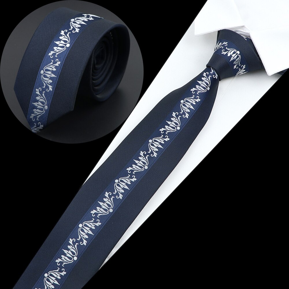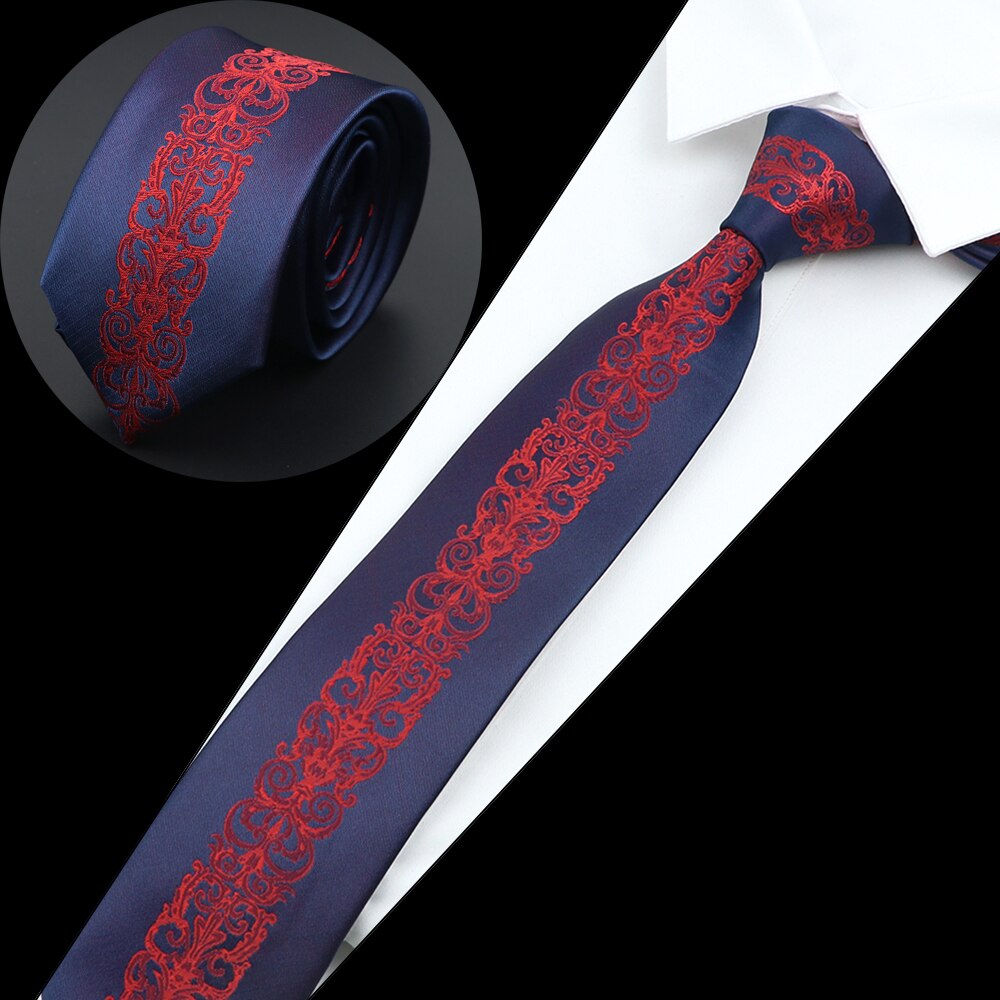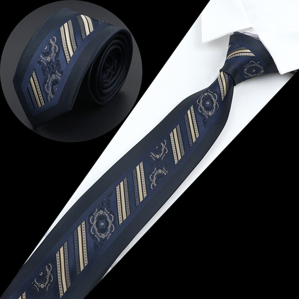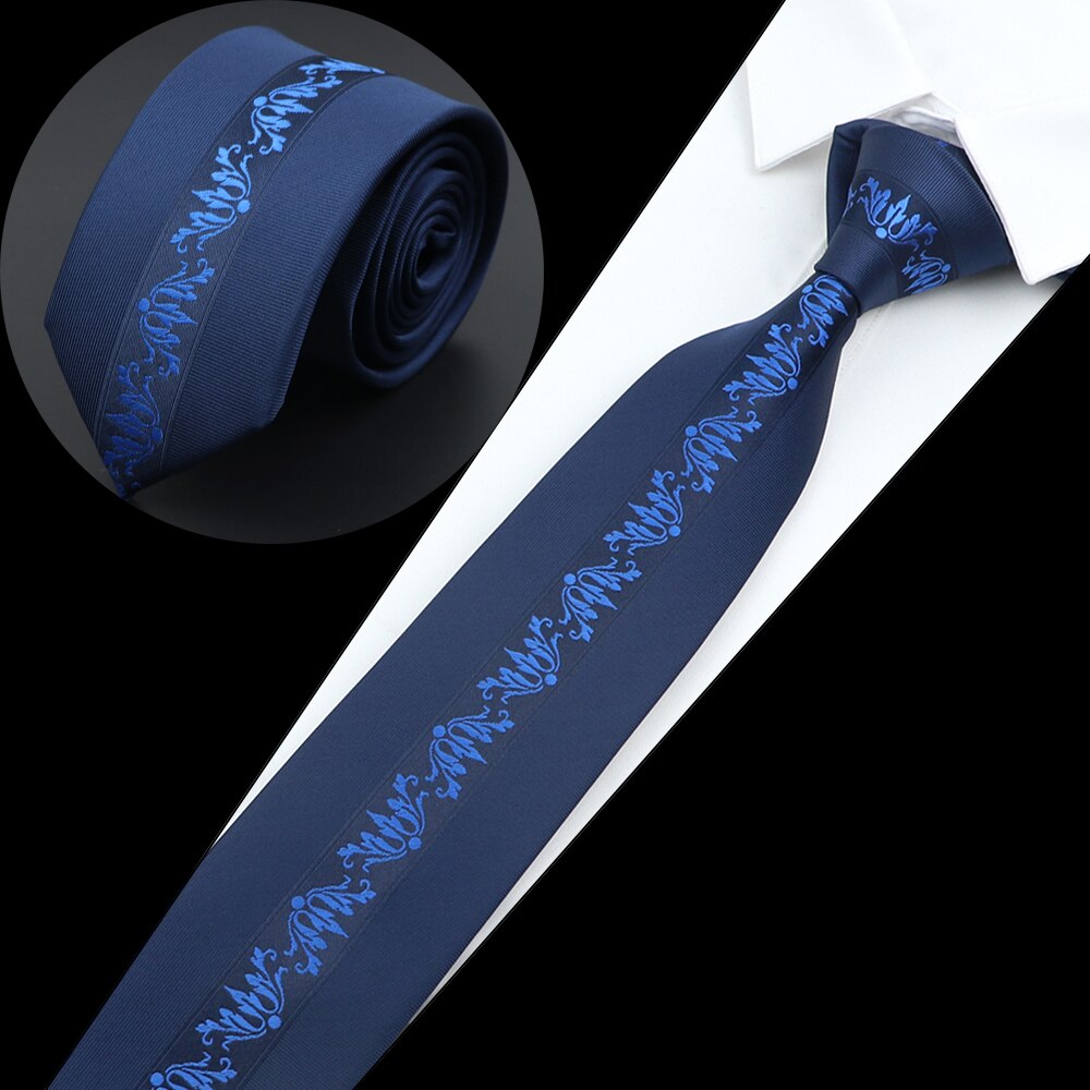 Luksuriøst herreslips jacquardvevd skinny slim 6cm svart blått blomster paisley-slips bankett festskjorte